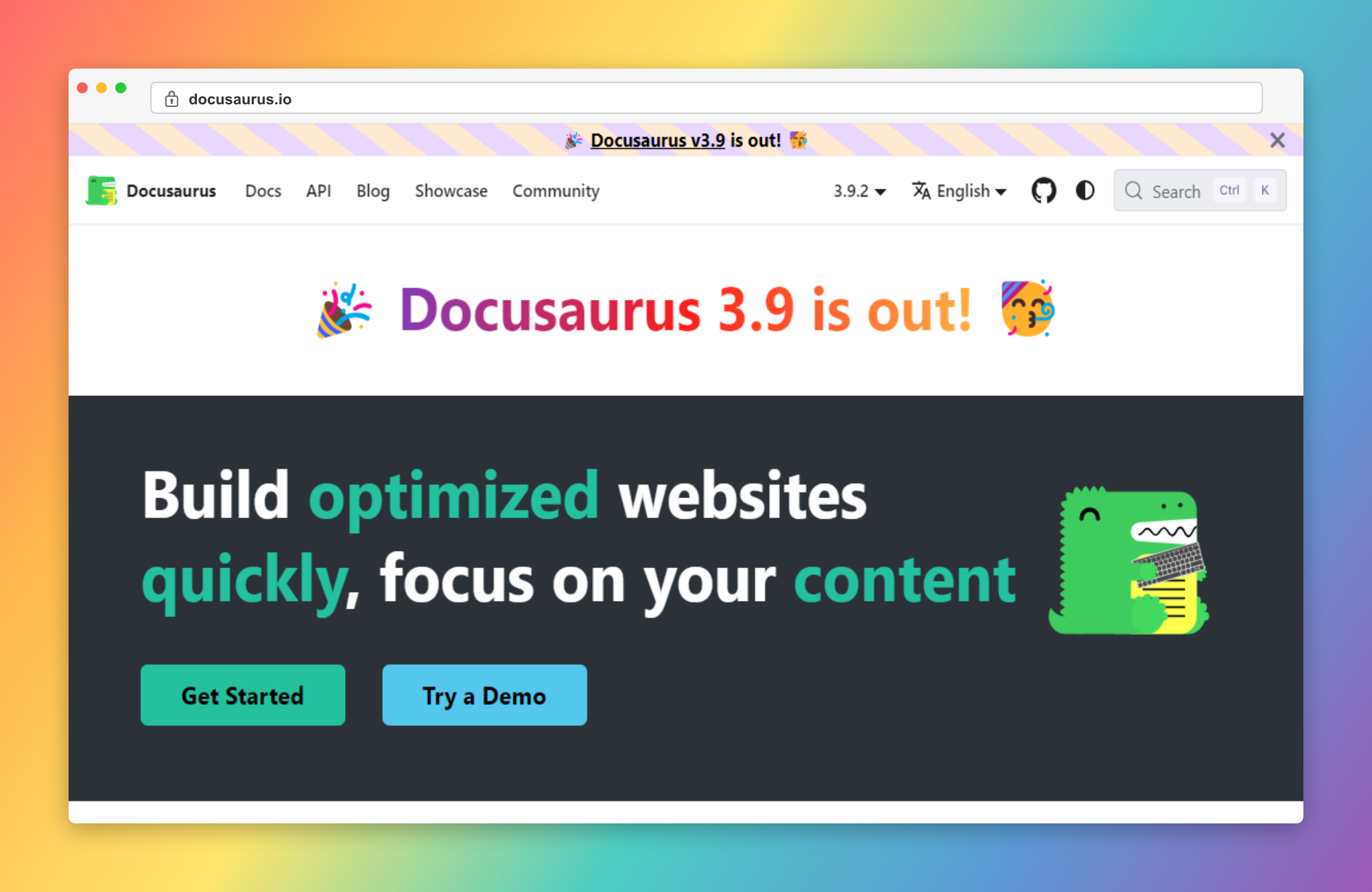 Docusaurus is a static site generator built by Meta. It's open-source and free, letting you write Markdown files that get built into a documentation website. You host it yourself (Vercel, Netlify, etc.) and maintain the build pipeline, dependencies, and infrastructure.